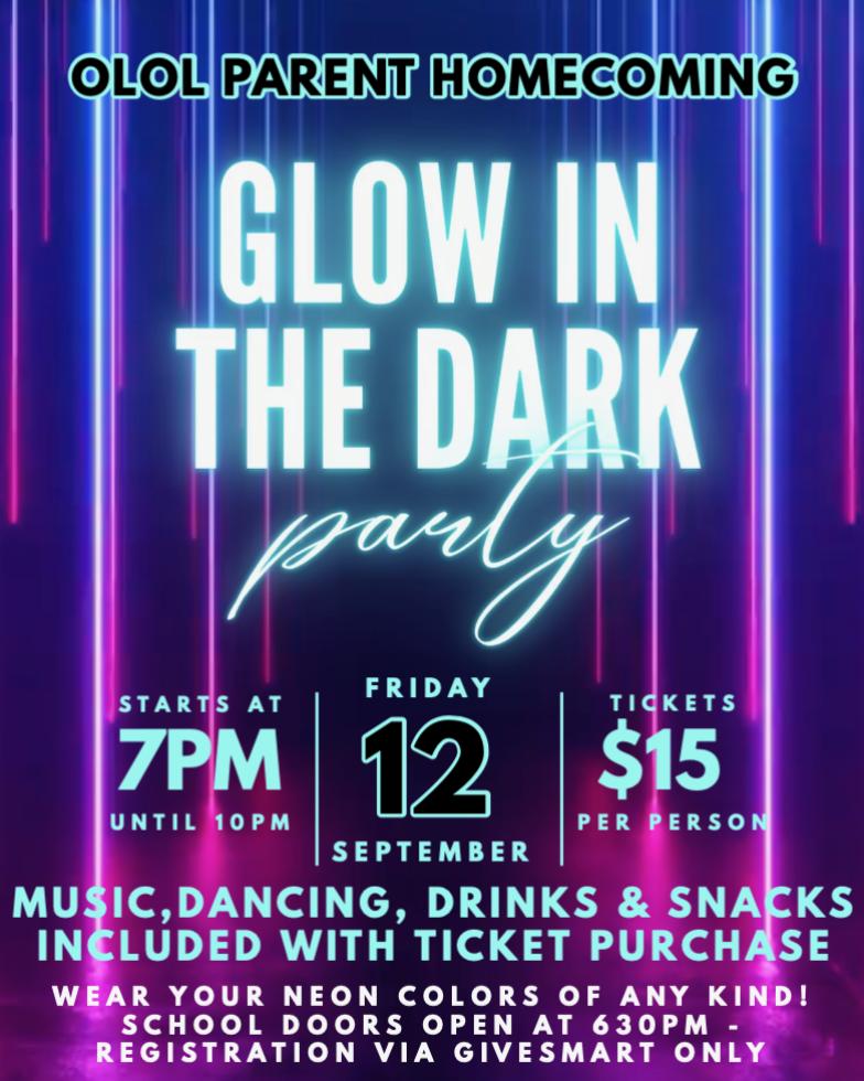 Break out your best Neon and Glow-In-The Dark attire, be ready to dance the night away, and enjoy connecting with other Lourdes parents! This will be the perfect opportunity for new and existing parents to hang out and have a night of fun and fellowship.