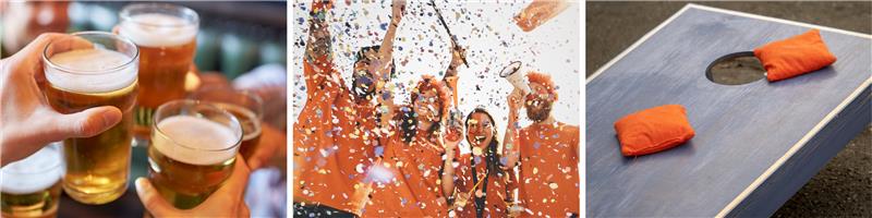 The party starts at 12 pm to give everyone time to settle in before kickoff! The event will wrap up as soon as the game is over.