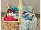Package Donated by Adi & Tracy of the "It Still Takes A Village" Podcast includes: Bottle of wine, signed book, candle, loofah, Birchbox, Starbucks mug, coffee from Hazels, body scrub, dessert mix, sign and 60 minute Massage from Jonna Rehm.