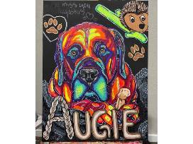 If you love bold colors and a unique street art style, this pet portrait package is for you! See your pet's likeness like you've never seen it before with a custom 11"x14" painting by local artist Nichole Smith. She will also hide little "Easter eggs" about their story and personality in the painting (see Gumbo's painting on display for an example!)
