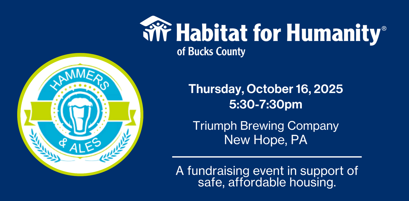 Enjoy a casual evening out and team up with Habitat Bucks to build awareness of the need for affordable housing and help us build our next home.