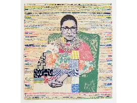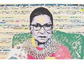 Woven screenprint, quilted fabric, crocheted paper from Constitutional Law treatise