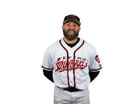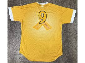 Game-worn, autographed jersey by bullpen catcher Mike Morris.