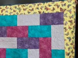 The Quilt is 58 3/4" H x 69" L and is done in ThyCa colors and butterflies.