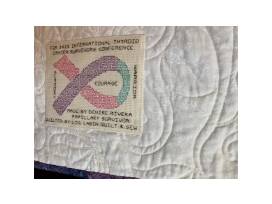 The quilt top is pieced and machine stitched by Denise Rivera. The quilting is done with a butterfly motif and is machine sewn by Rocky Mountain Quilt and Sew.