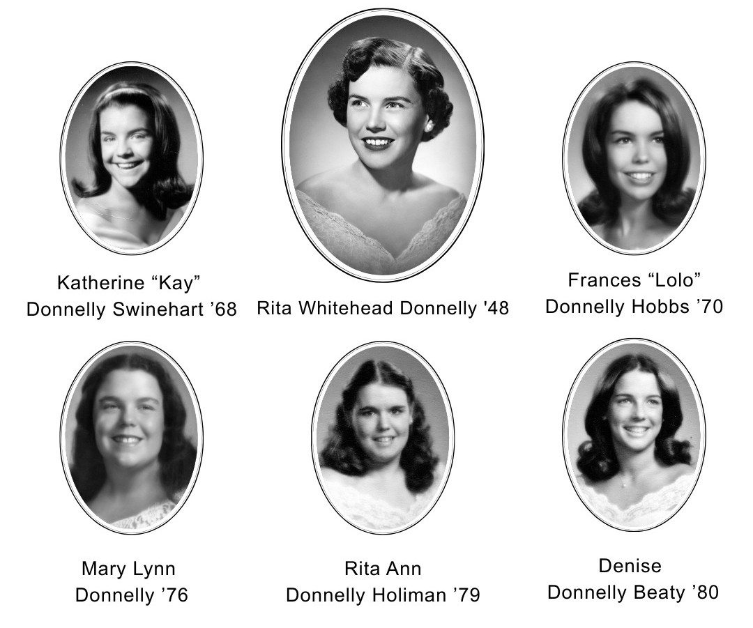 We are honored to recognize Mary Lynn Donnelly '76, Rita Ann Donnelly Holiman '79, Denise Donnelly Beaty '80, and to posthumously honor Frances "Lolo" Donnelly Hobbs '70, Katherine "Kay" Donnelly Swinehart '68, and their mother Rita Whitehead Donnelly '48. The Donnelly family has been a source of steadfast friendship and faithful support to St. Cecilia Academy, and we look forward to celebrating their remarkable legacy.