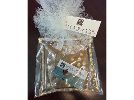 Enjoy this clear tray with gold edge and cocktail napkin set from Oak & Willow!