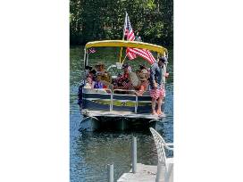 "Join us for a 1 hour leisurely cruise around Bashan Lake (276 acres) in East Haddam on a 25' Qwest Portoon boat. For 6-8 people on a mutually agreed upon day in July or August 2026. Non alcoholic and a Klondike bar provided. Life preservers on board."