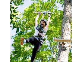 Tree Trails in Mystic, CT is offering you and a friend the challenge to conquer the Main Park treetop experince with 5 ariel trails, 63 elements and 12 ziplines! Easy trails start at 10 ft but can go up to 50ft off the ground with tree-to-tree cable, wood and rope course.