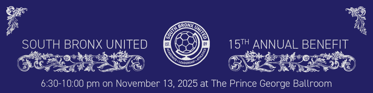 South Bronx United's 15th Annual Benefit will be held at the Prince George Ballroom, a beautifully restored historic space in the heart of Midtown Manhattan. The elegant ballroom offers an iconic backdrop for our celebration, featuring grand architectural details and modern amenities. The event is 21+.