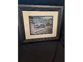 2 Black and White Keeneland race meet prints in gorgeous black frames. Circa 1040's. Size: 21" x 25"