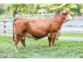 A February 2021 daughter of NJW Mighty 49C ET out of a clean Small Town Kid. In the prime of her reproductive life, Peaches has always calved unassisted and raises her calves well. Pasture exposed to CMF Ernst Power Broker 405F, safe in calf. Halter Broke and was successfully shown as a calf.