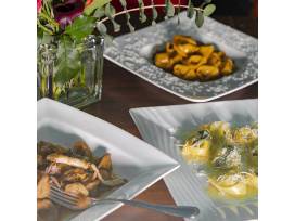 Popular dishes include duck, Agnolotti al plin, and tiramisu. The menu also offers Calabrian-style entrées and desserts like crema bruciata.