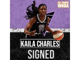 2 T-shirts (size S) signed by Kaila Charles #6, a hat, a tote bag, a water bottle, and 2 wristbands