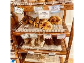 The bakery offers a variety of artisan breads, with sourdough being a specialty. The San Francisco location is known for its "Auntie Mabel's Kookie Brittle", which was named the best