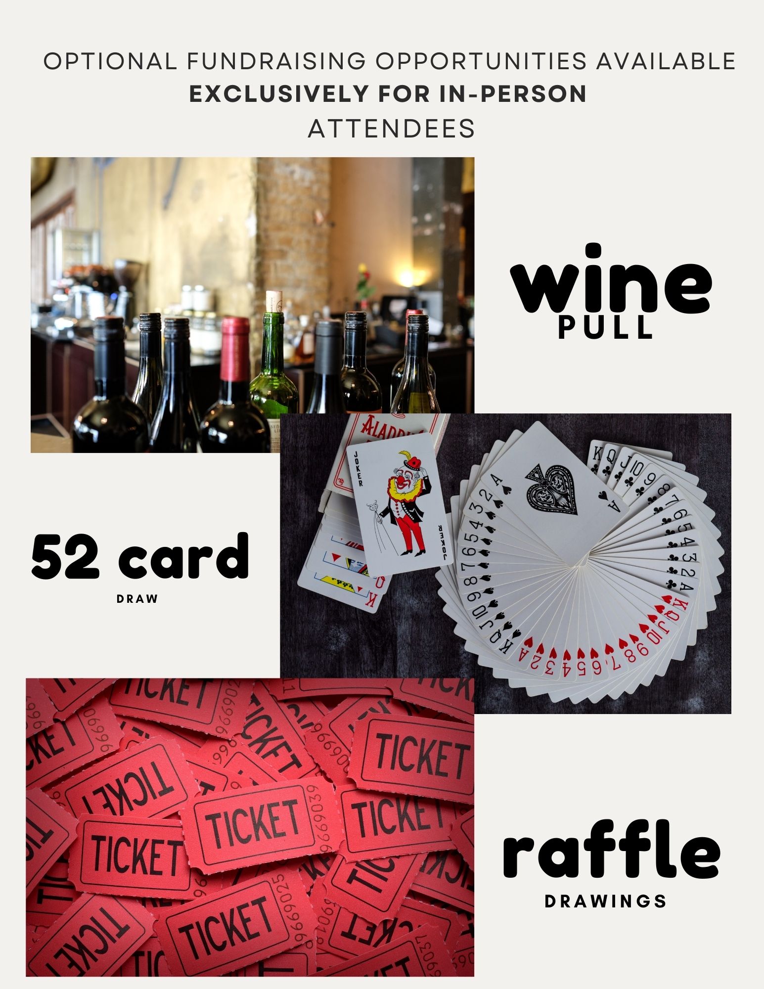 Absolutely! In addition to the Wine Pull, guests joining us in person will have the chance to take part in fun raffles and drawings throughout the night. These are totally optional-but you won't want to miss the excitement! Games will include the popular 52 Card Draw and special bonus raffle items up for grabs.