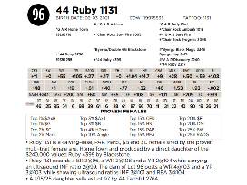 - Ruby 1131 records a BR 2@96, a WR 2@108 and a YR 2@104 while carrying an ultrasound IMF ratio 2@99. The dam of Lot 96 posts a WR 4@103 and a YR 3@103 while showing ultrasound ratios IMF 3@101 and REA 3@104.