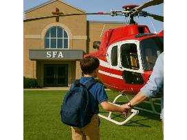 One lucky student and one adult will be picked up by helicopter right after school during carline. The helicopter will land on the field across from SFA for an unforgettable departure.