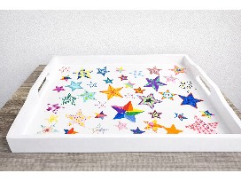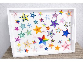 This bamboo serving tray with handles was created by Ms. Desing's 5th grade class.