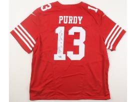 Up for auction is this Nike, size XL, jersey that has been hand signed by San Francisco 49ers quarterback Brock Purdy.