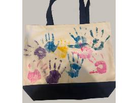 This canvas tote bag was made by Mrs. Henteges kindergarten class.