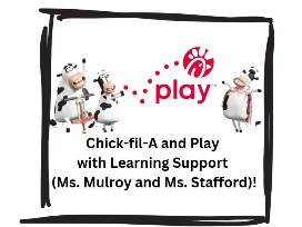Chick-fil-A and Play with Learning Support (Ms. Mulroy and Ms. Stafford)!