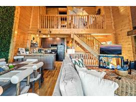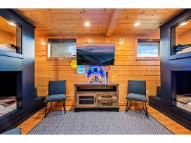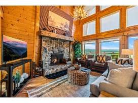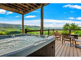 This gorgeous 6 Bedroom, 3 Bathroom home in the Smoky Mountains sleeps 14 and has some of the best views! This home has been completely renovated from top to bottom, with two large decks, hot tub, gas firepit, cornhole, ladder ball, gas grill, in-home entertainment, and more.