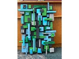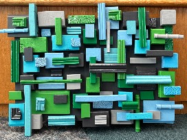 A lasting keepsake of little hands and big hearts, this abstract wood college was created together by our entire kindergarten class to commemorate this milestone year and the joy of learning side by side.