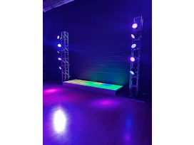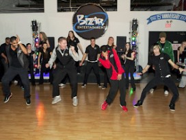 Bizar Entertainment has a super cool party room w lite up stages and steel towers w sick lights.