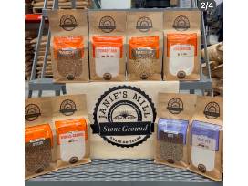 And so the seed of what would become Janie's Mill was planted. It took years of research and planning before we began stone-grinding grains from Janie's Farm in the spring of 2017. We worked with bakers to get their input and feedback and by fall, we were milling consistent, high quality flours that earned kudos from both home and professional bakers. We've been milling those flours, and adding more to meet bakers' specific needs ever since, and can't wait for you to use our flours, grits, and whole grains in your kitchen or bakery!