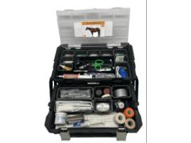 Vitals Signs Card, Vital Signs booklet, Digital Thermometer, Stethoscope, Flashlight pen, 8x Wooden tongue depressor, Bandage scissors, 2x Disposable Scalpel, 6x #20 Surgical blades, 8x Exam Gloves , 24x Alcohol Prep Pads, 1x Triple antibiotic ointment, 4oz Iodine solution, First Companion Electrolyte Paste, Probios Probiotic Paste, 4oz DMSO, Vetrap, Lightplast Pro Tape, Elastikon Tape, Porous Tape, Duct Tape, 3" Brown gauze, 2x Large 8x10 non-adherent Telfa pads, 3x Small 3x5 non-adherent Telfa pads, 2x 8x10 Abdominal Pads, 20x 4x4 Gauze, Standing Cotton Wrap, Cotton Elastic Wrap, 6x 20G x 1.5 needle, 6x 20G x 1 needle, 6x 18G x 1.5 needle, 6x 18G x 1 needle, 6x 16G x 1 needle ,60 mL syringe,35 mL syringe, 2x 20 mL syringe, 2x 12 mL syringe, 2x 6 mL syringe,4x 3 mL syringe with 20G x 1.5 needle combo, Cordless Trimmer, Horse Weight Tape, Restocking brochure