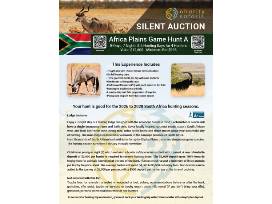 08 days and 7 nights for four hunters with Theron Safaris, including six full hunting days, gourmet meals, daily laundry, trophy field prep, airport transfers, and 1:1 guided hunting for trophy class game. A $2,000 deposit per hunter applies to trophy fees; average trophy fees run $4,500-$5,500. Airfare and trophy fees not included. See flyer for full details