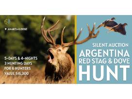Enjoy 6 days and 5 nights for six hunters at Estancia Amakela with guided big game hunts, a full day of dove shooting, all meals, airport transfers, and in-field transportation. A $2,000 deposit per hunter plus $1,500 later applies to trophy fees. Each hunter must take two animals. Airfare, licenses, trophy fees, taxidermy, ammo, and gratuities not included.