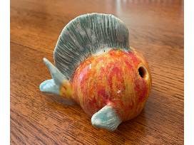 A charming hand-thrown stoneware fish luminary with vibrant glaze and playful character. Designed to glow beautifully when lit, this one-of-a-kind piece adds warmth and personality to any shelf, table, or coastal-themed space. A delightful blend of craftsmanship and whimsy.