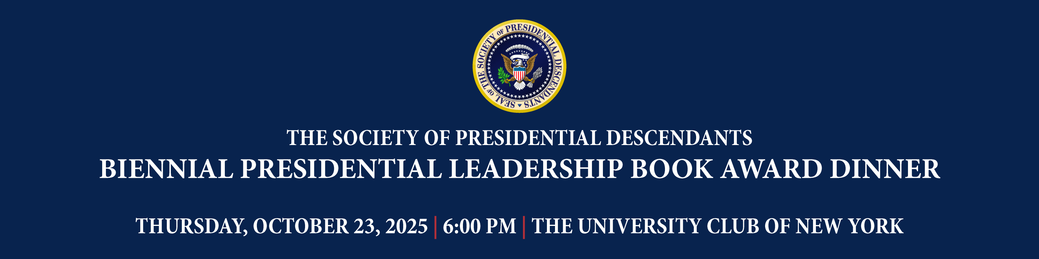 The Society of Presidential Descendants, in partnership with The Roosevelt School at Long Island University, is honored to host the Presidential Book Award Dinner, a biennial event recognizing exceptional contributions to the study of presidential leadership and history through distinguished works of nonfiction.