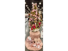 5' Silkcraft of Oregon Noble Fir Lit Tree - All things bows and pink. This Beautiful " Real like" tree is adorned with bows and pretty ornaments. This tree is ideal for a small space that will make a big impact. Also, ideal for a little girl's room.