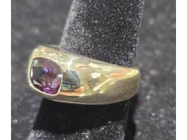 Custom designed, color changing sapphire ring with a weight of 2.80 carats and a measurement of 9.5 x 7.5 millimeters. 14 kt yellow gold. The ring can be sized to fit either a lady or gentleman. Plus to show support for Equality Florida, the logo has been added to one side of the setting.