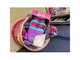 Step into a world of pink, sparkle, and imagination! This Barbie basket is packed with everything you need for hours of fashion, fun, and adventure. From stylish dolls and accessories to dreamy extras, it's the perfect way to bring Barbie's motto to life: you can be anything! This includes a Barbie Dreamhouse and a Barbie camper!!!