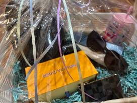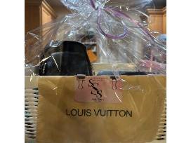 Travel in-style with this lovely black LV cross body and coin/card pouch. This basket also includes Louis Vuitton sunglasses and leather case.