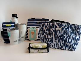 Stay stylish and organized on the go with this chic gift basket featuring favorites from Scout Bags and Swig Life. Includes durable and colorful lunch boxes, tumblers, and a jewelry roll - perfect for busy days, travel, or everyday errands.