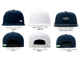 - Trenches Icon Hydro (White & Navy) - An elevated flat visor style with a deep fit and signature horizon crown shape