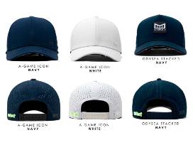 - Coronado Brick (White & Navy) - An elevated flat visor style with a deep fit and signature horizon crown shape