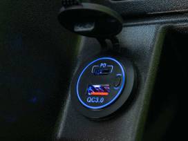 Dual USB charging ports (USB-A + USB-C), backlit for convenience.