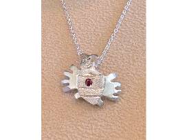 Embrace timeless craftsmanship and elegance with this stunning handcrafted sterling silver BumbleBee pendant necklace. Expertly designed and hand-textured, the BumbleBee symbolizes strength, focus, and purpose - beautifully complemented by a deep red ruby centerpiece that radiates vibrant energy. Sparkling lab-grown diamond accents bring the eyes to life, adding a refined touch of brilliance.