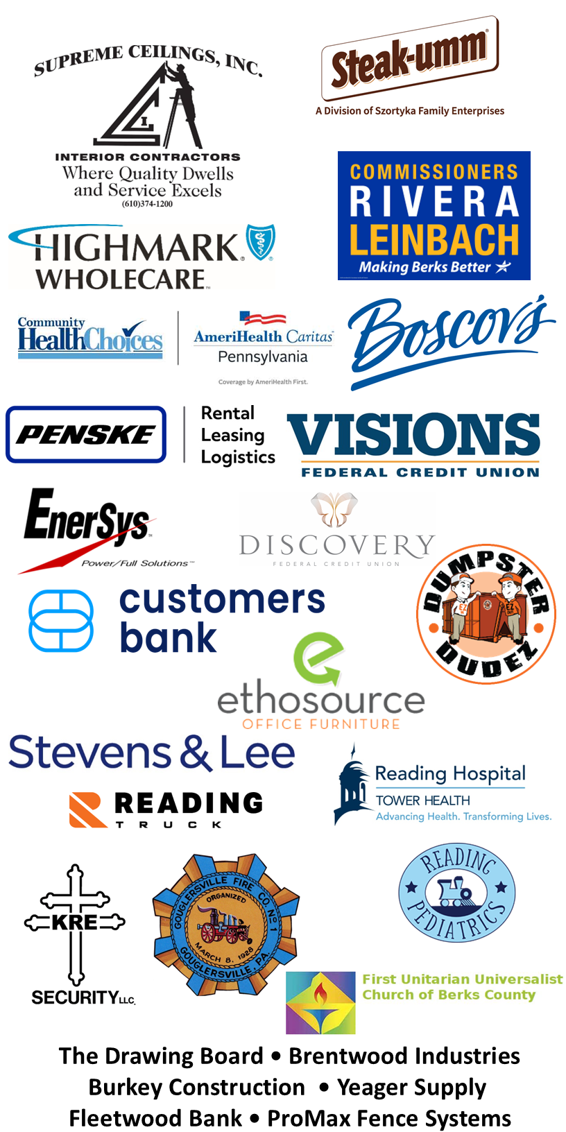 Allegheny Evangelical Lutheran Church, Boyertown Middle School, Exeter High School, Friedens Lutheran Church, Hamburg Area High School, Kutztown High School, Kutztown University, Muhlenberg High School, Oley Valley High School, Schuylkill Valley Middle School, Twin Valley Middle School, Wilson High School