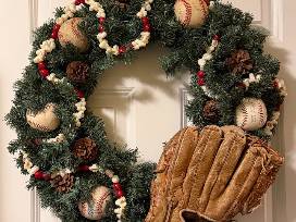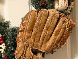 Capture the timeless magic of the baseball season and the coziness of the holidays with this one-of-a-kind handcrafted wreath. This unique piece combines the rustic charm of an old baseball glove and authentic baseballs with festive, nostalgic elements. A scattering of bright red cranberries and strings of fluffy popcorn create a beautiful holiday pop against the rich, worn leather and white stitching of the baseballs. This wreath is the perfect way to show your love for the game while adding a touch of classic, homemade cheer to your front door or mantel. (22'' unlit wreath)
