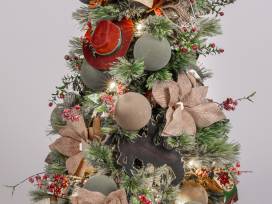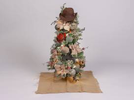 Hold on, partner! You don't want to miss this 4-foot lighted Christmas tree with Cowboy Santa ornaments, burlap poinsettias, and neutral and green textured ornaments. Hats, boots, woven tumbleweeds, a cowboy hat topper, and a burlap tree skirt complete the tree.