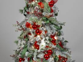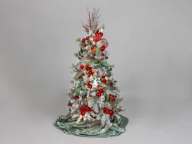 4-foot tree with various winter greenery, red ball clusters, berries, and mesh, and multi-textured green ribbon and bows