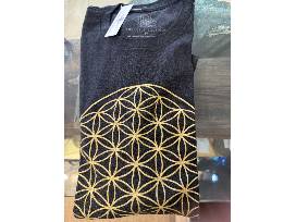 Blue/Silver Flower of Life Tee (Size XL) - Made from a luxuriously soft tri-blend jersey (50% polyester, 25% cotton, 25% rayon), this shirt features the timeless Flower of Life symbol in shimmering silver. Printed in Santa Barbara by The Lotus Boutique, it's a wearable reminder of harmony, connection, and universal rhythm. (Shirt in photo shows design - actual color for shirt is BLUE)