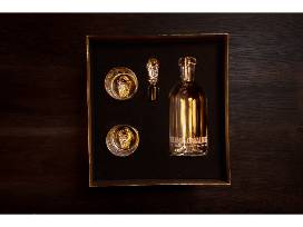 Raise a glass to Cleveland pride! Designed and made by local artist Nate Cotterman, this one-of-a-kind Cavs bar set turns team spirit into art. The handblown glass decanter and matching glasses feature the team's "V Net" logo in gold - which also doubles as a chilling cube to cool your drink without diluting it. Both functional and display-worthy, it's the perfect blend of local artistry and Cavs pride.
